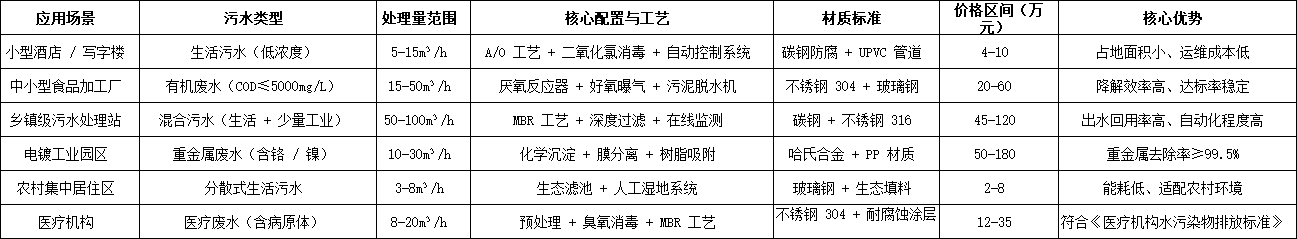 二、熱門場景污水處理設備價格表(精準版)